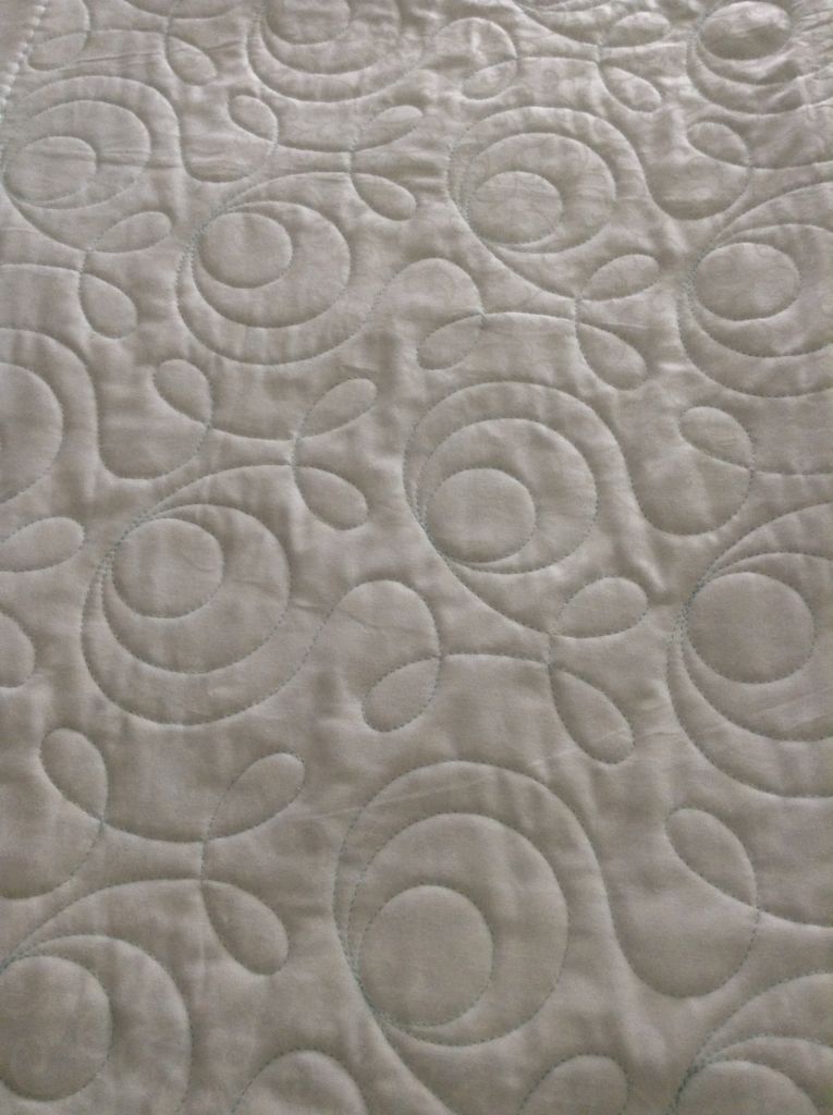 And the same design again on Pam P’s quilt, Warm & Natural batting, with cream thread. She made a cute pieced backing.