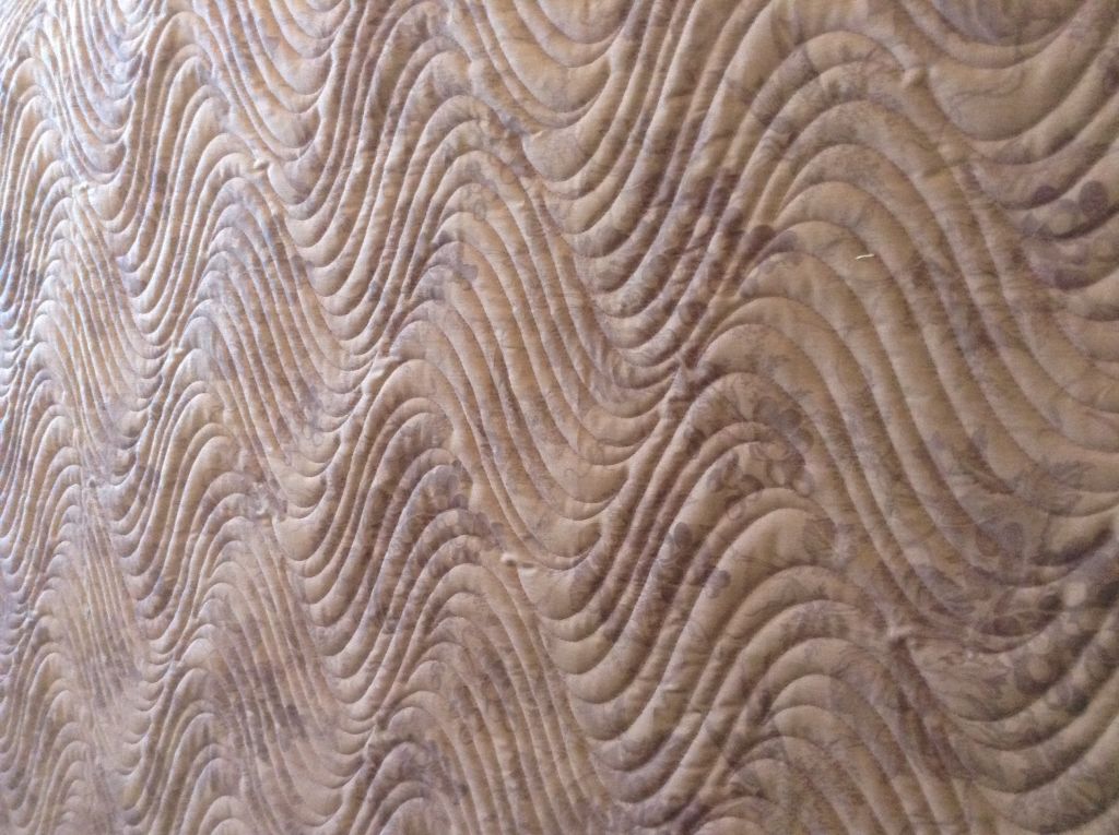 This is a beauty! I had a hard time letting this quilt leave my house today. This is a Triple 4 patch. The quilting design is Curly Weave, the batting is Hobbs Wool & the thread is dark purple. The backing fabric is a dark plum but photo’d a bit lighter. Just love this quilt, Donna better keep her eye on it.