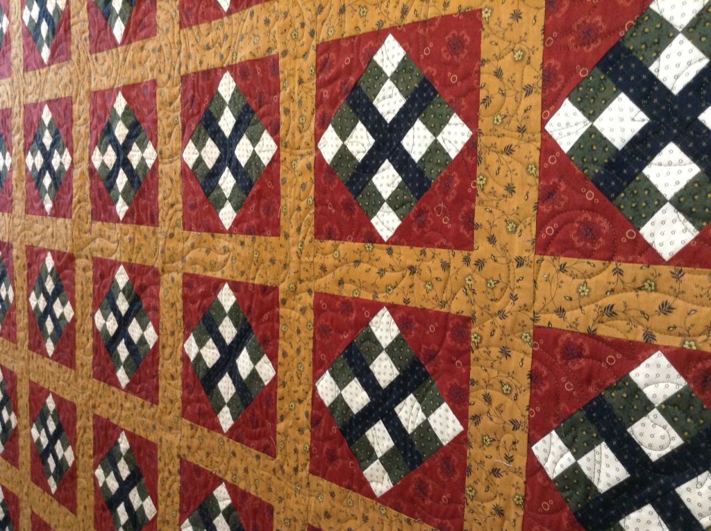 Here are some pics of Connie M’s nearly perfect quilt. It was such a pleasure to quilt. The pattern is called Manassas by Jo Morton.