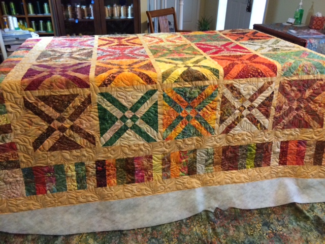 Maryann made this beautiful quilt. This pattern is Arrowhead by Anita Grossman Solomon. The pattern is available for free at QuiltMaker. The quilting design is Garden Path by Kristen Hoftyzer, Hobbs Wool batting and Copper color thread. I love how this design gives the quilt some great texture.