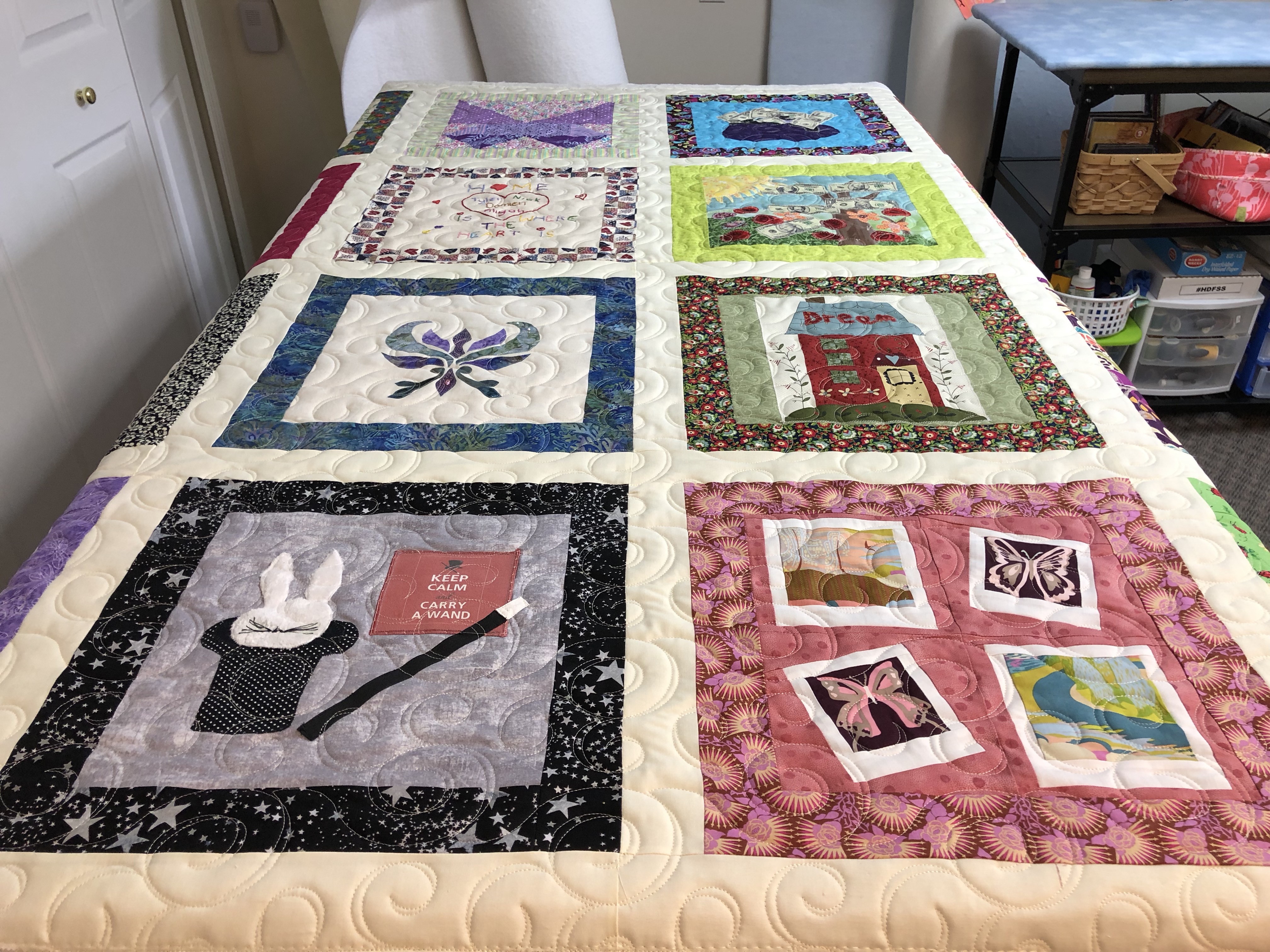 Manifestation Quilt Quilted Posted on March 16, 2019 by Nancy Hughson - Quilted Impressions Embellish allover design, cream thread & Hobbs 80/20 batting. Share this: Click to share on X (Opens in new window) X Click to share on Facebook (Opens in new window) Facebook Like Loading... Related