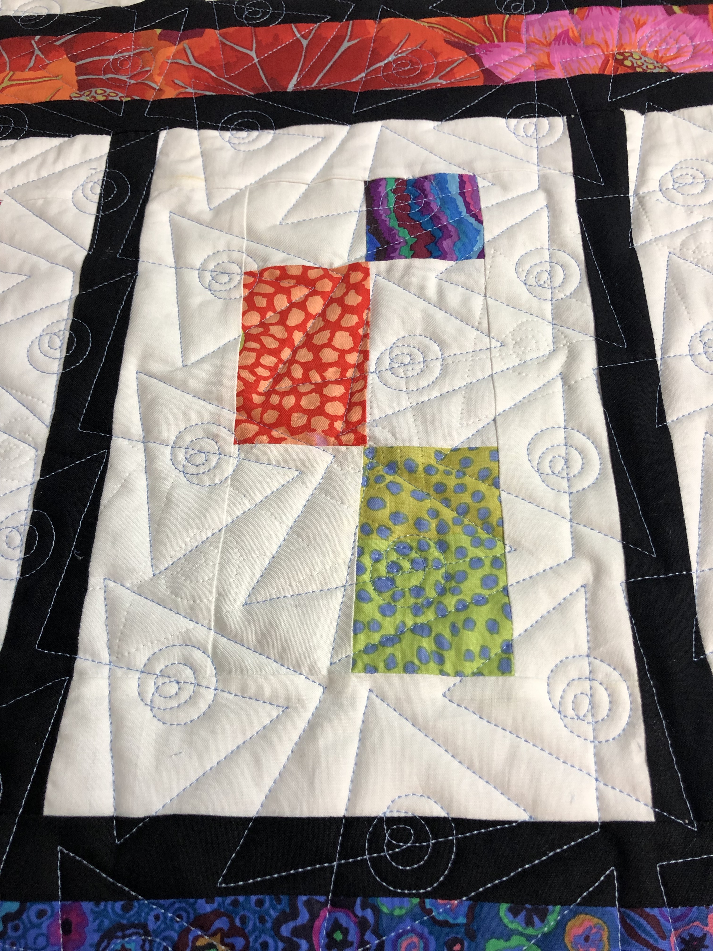 Kaffe Quilt Posted on June 3, 2019 by Nancy Hughson - Quilted Impressions Rosannes Kaffe fabrics Quilt, the quilting design is Apex. Rosannes Kaffe QuiltClose upQuilt Back Share this: Click to share on X (Opens in new window) X Click to share on Facebook (Opens in new window) Facebook Like Loading... Related