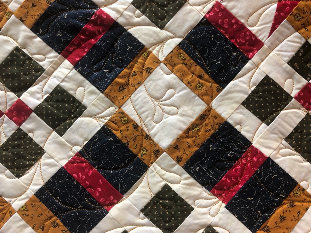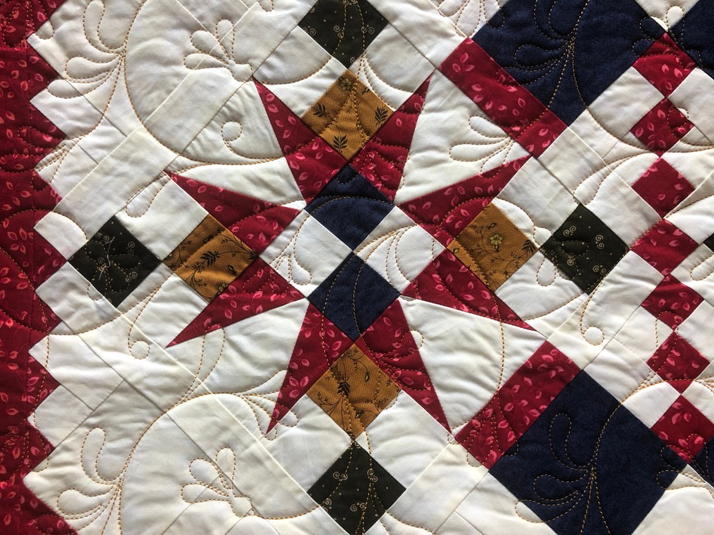 1. Oh my gosh, Nancy. I love my quilt! You quilted it so beautifully, I can’t thank you enough. Gorgeous! Definitely, a keeper, this second Prairie Quilt Militia block of the month I’ve finished now.