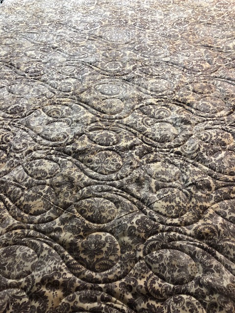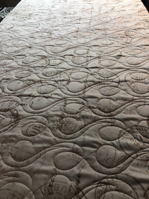 Modern on one side, traditional on the other. Two wide backs for a quilted comforter for my guest room. The quilting design is called Twist, the batting is Quilters Dream Puff and I still need to find a binding to match both sides.