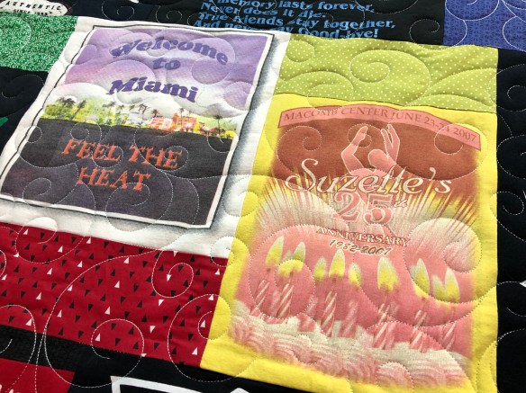 Kelly’s T-shirt quilt Posted on February 18, 2020 by Nancy Hughson - Quilted Impressions This is Kelly’s quilt. The quilting design is Debs Swirls, White thread and Hobbs 80/20 batting. Cute!! Share this: Click to share on X (Opens in new window) X Click to share on Facebook (Opens in new window) Facebook Like Loading... Related