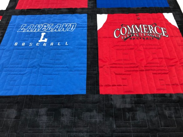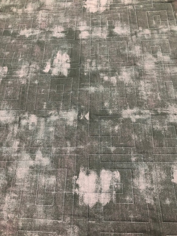 This is a commission I pieced and quilted for Anna’s son. The quilting design is Squares B2B, charcoal thread, Hobbs 80/20 batting. The fabric is Moda grunge. 😍