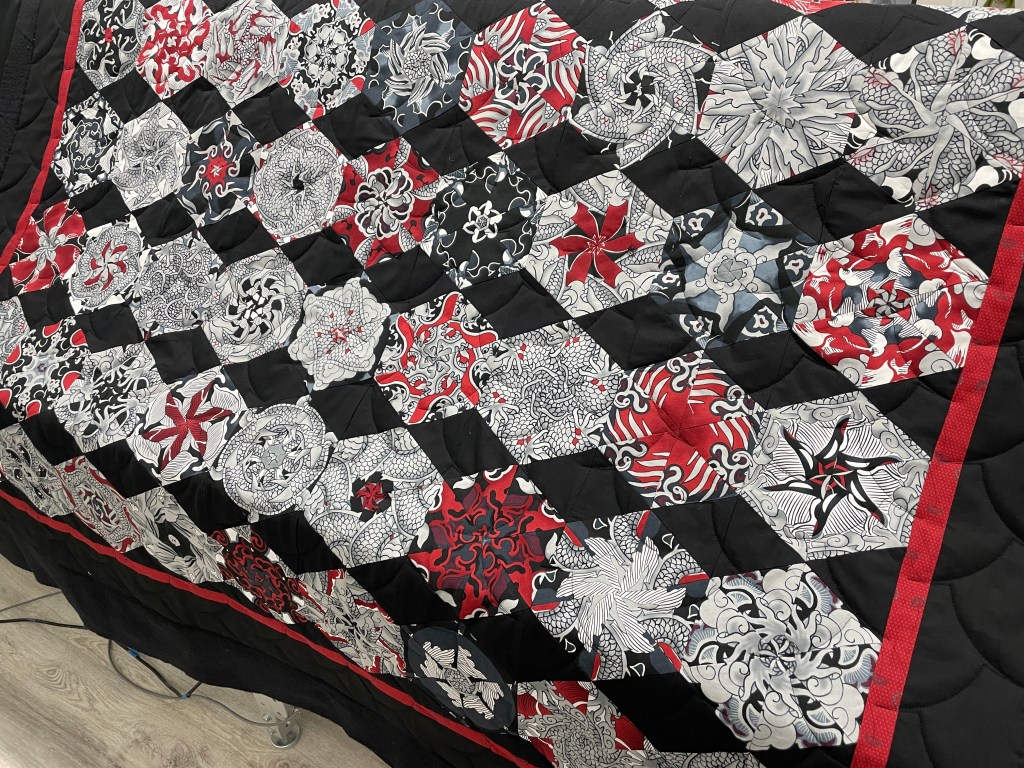 Shirley’s One Block Wonder Posted on June 20, 2021 by Nancy Hughson - Quilted Impressions Hashi allover quilting Share this: Click to share on X (Opens in new window) X Click to share on Facebook (Opens in new window) Facebook Like Loading... Related