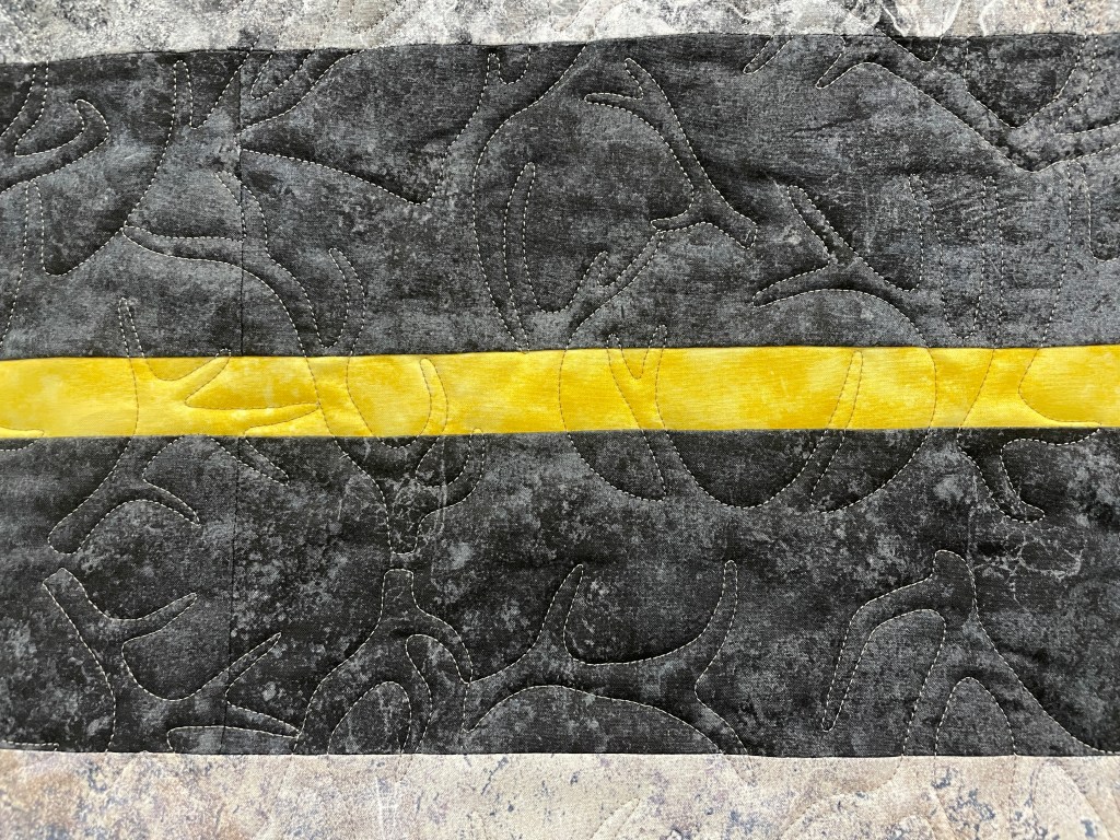 Connie’s Quilt – Hero’s Dispatchers thin line Posted on June 27, 2021 by Nancy Hughson - Quilted Impressions Wish I had a better photo but this stripy quilt has random flying geese in it Antlers allover quilting design Really nice flannel fabric backing Share this: Click to share on X (Opens in new window) X Click to share on Facebook (Opens in new window) Facebook Like Loading... Related