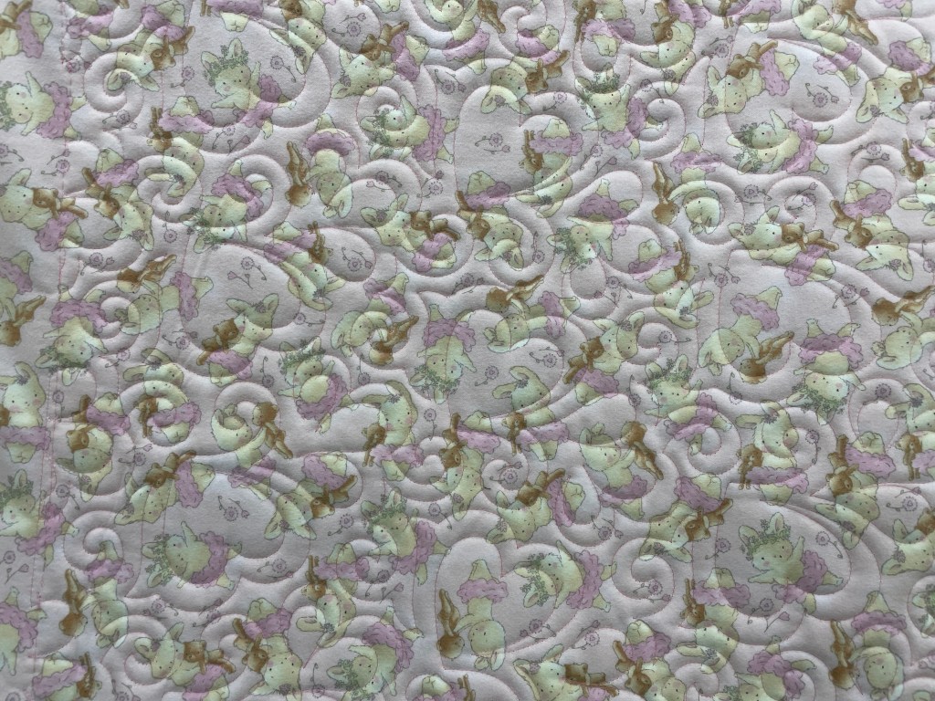 I made this baby quilt for a friend of my daughters. It’s flannel front and back. The quilting design is PS I love you.