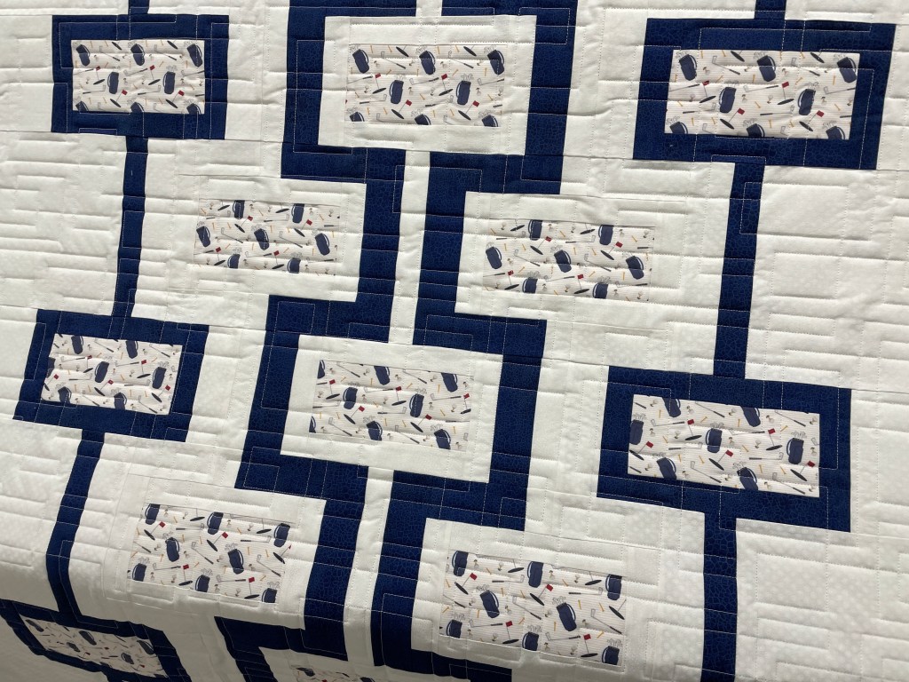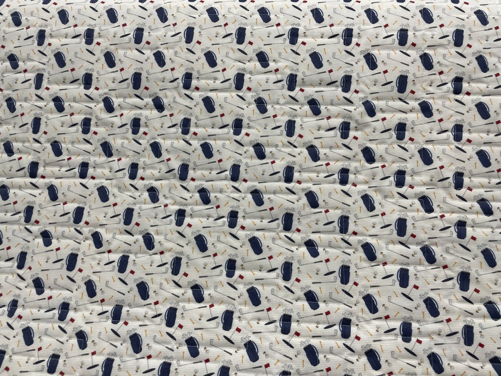 Sues Golf theme Baby quilt Posted on February 19, 2022 by Nancy Hughson - Quilted Impressions Quilt design is Square Dance, white thread and white batting Back Share this: Click to share on X (Opens in new window) X Click to share on Facebook (Opens in new window) Facebook Like Loading... Related