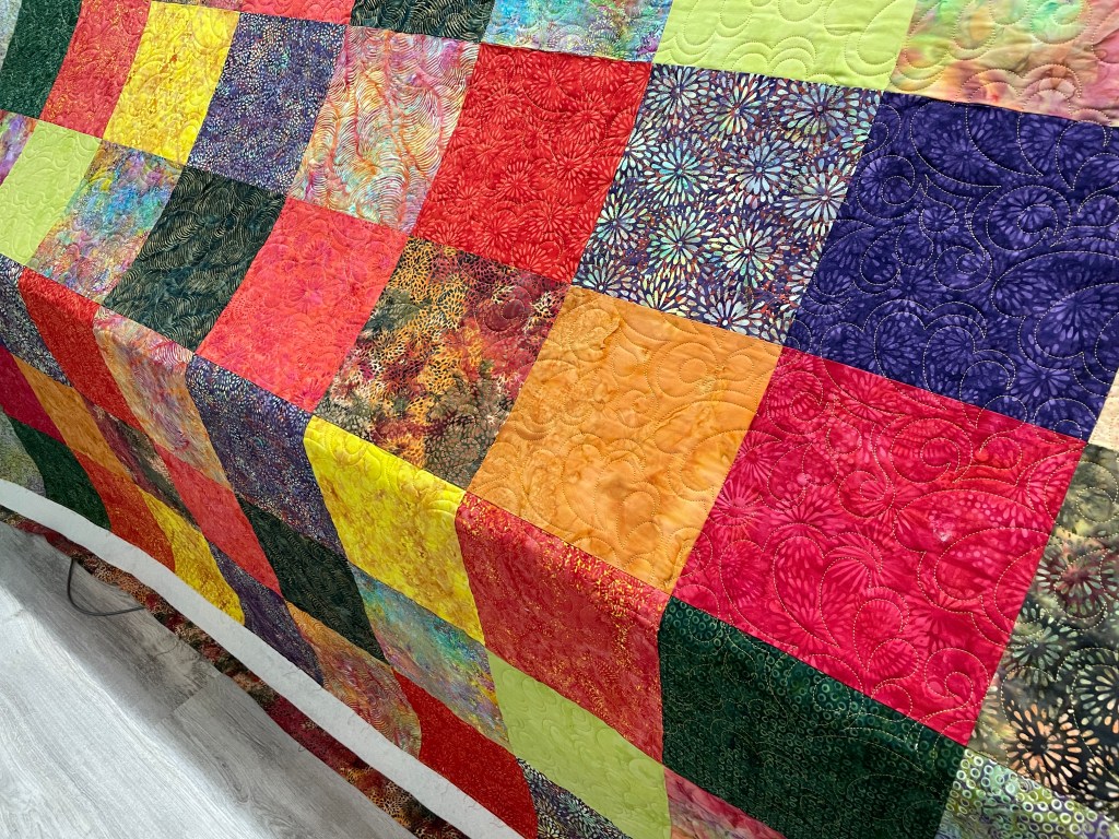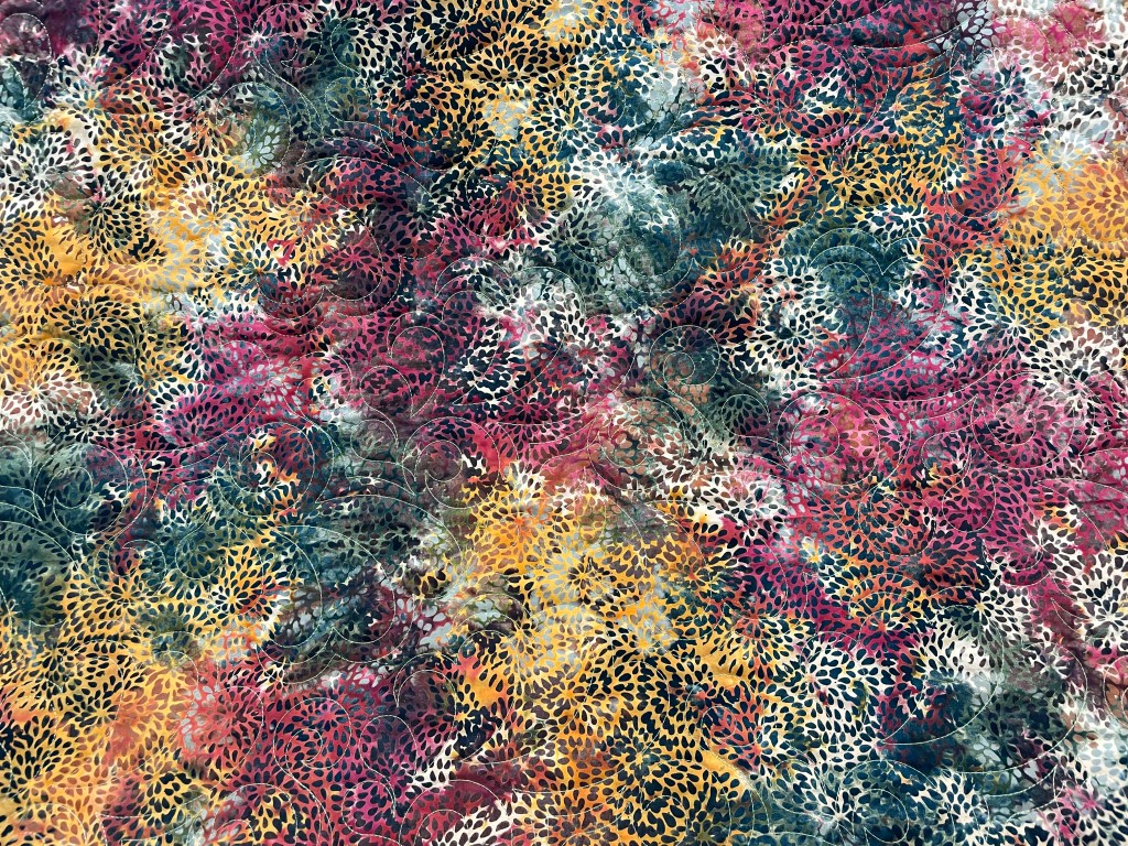 Sparks allover quilting design. Jill made this beautiful large quilt from batiks. What a nice quilt for her home.