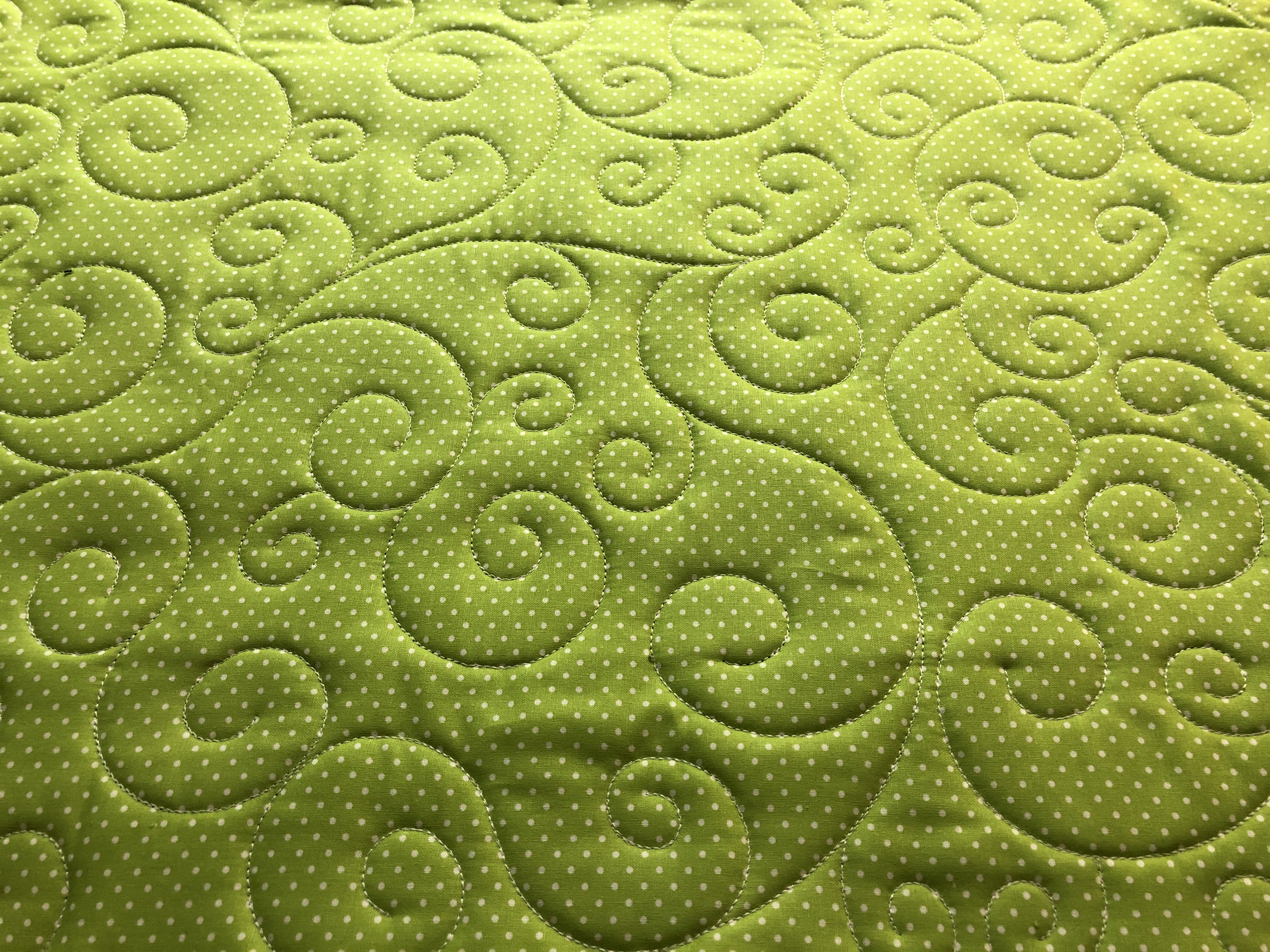 This is Kelly’s quilt. The quilting design is Debs Swirls, White thread and Hobbs 80/20 batting. Cute!!