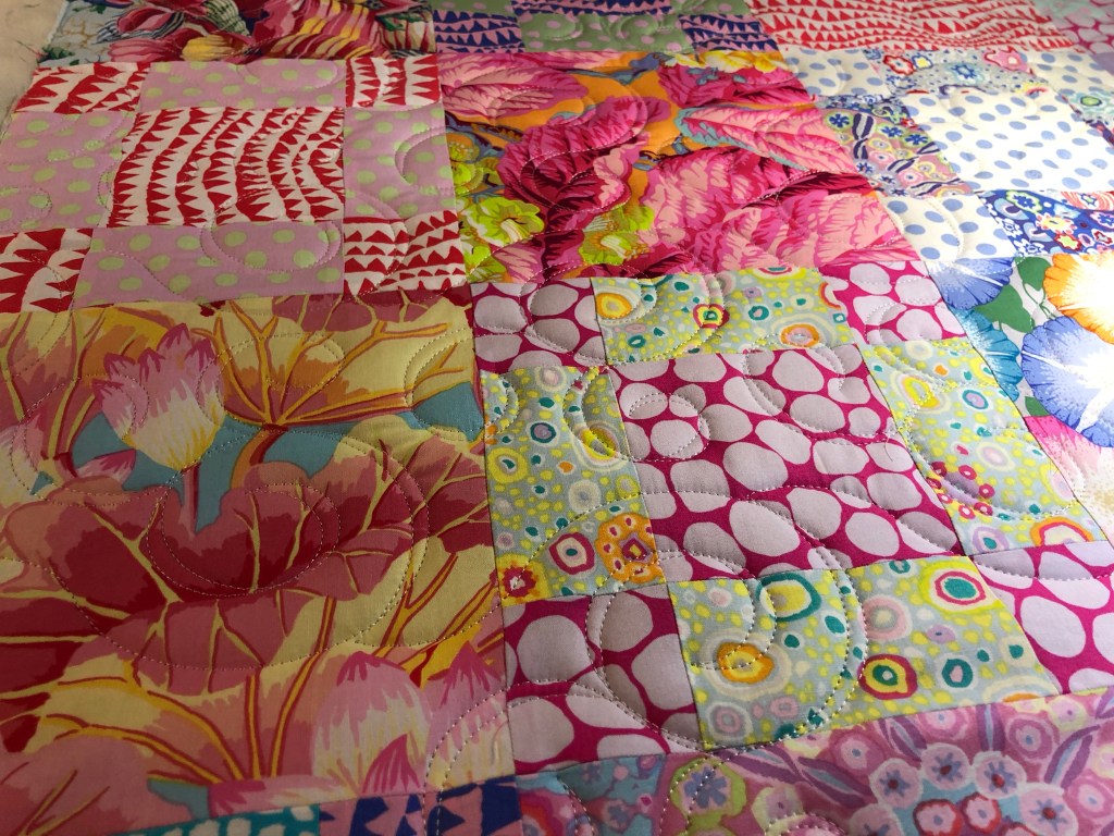 Kaitlins quilt is made with a lot of Kaffe fabrics. What pretty colors. This is currently being quilted