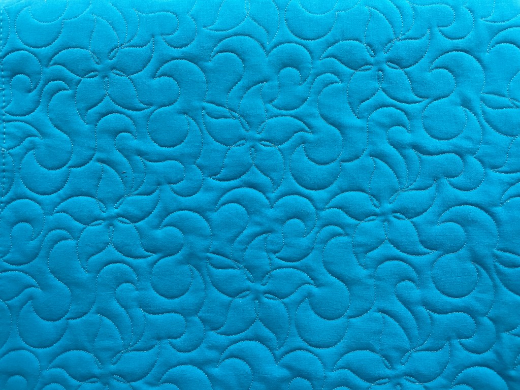 Bell blossom allover quilting design, teal thread and Hobbs 80/20 batting.