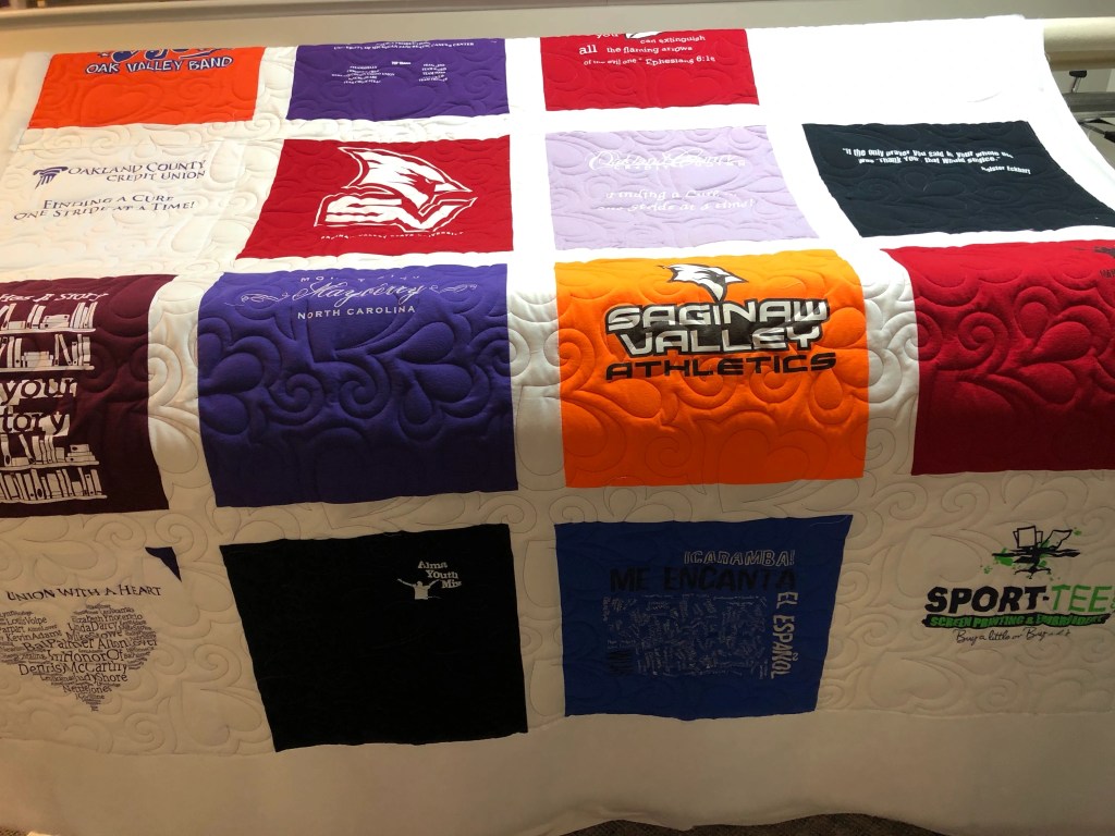 Tshirt Quilts Quilts I’ve made from start to finish Tshirt Quilts I’ve quilted for others Quilted Impressions AboutHomeContact Share this: Click to share on X (Opens in new window) X Click to share on Facebook (Opens in new window) Facebook Like Loading...